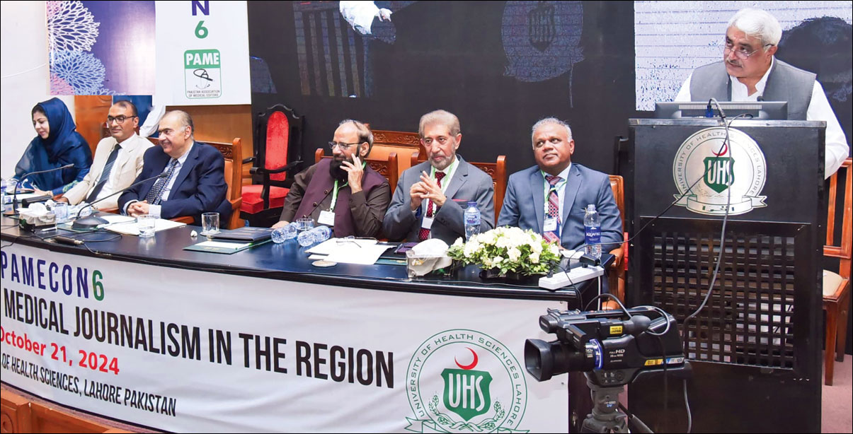 being established - Ahsan Waheed Rathore From Our Correspondent LAHORE: Medical Journalism has a bright future in Pakistan but we still need to further improve the quality of Research and Publications. This was stated by Kh. Salman Rafique Punjab Health Minister while speaking in the inaugural session of 6th Pakistan Association of Medical Editors (PAME) National Conference held at the University of Health Sciences on October 21st 2024. Enhancing the Quality of Medial Journalism in the Region was the Theme of the Conference. It was largely attended by healthcare professionals and faculty members besides editors of biomedical journals published from Pakistan.